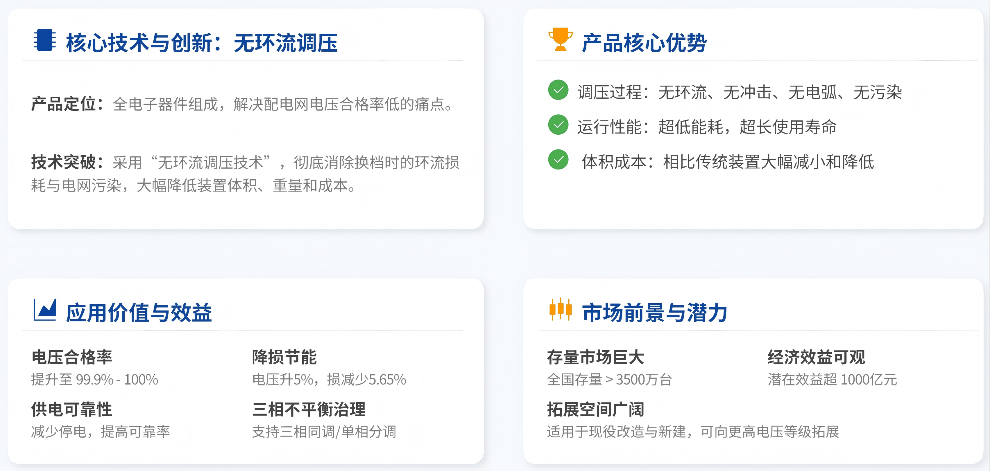 核心优势:调压无环流、无冲击、无电弧、无污染,能耗低、寿命长。